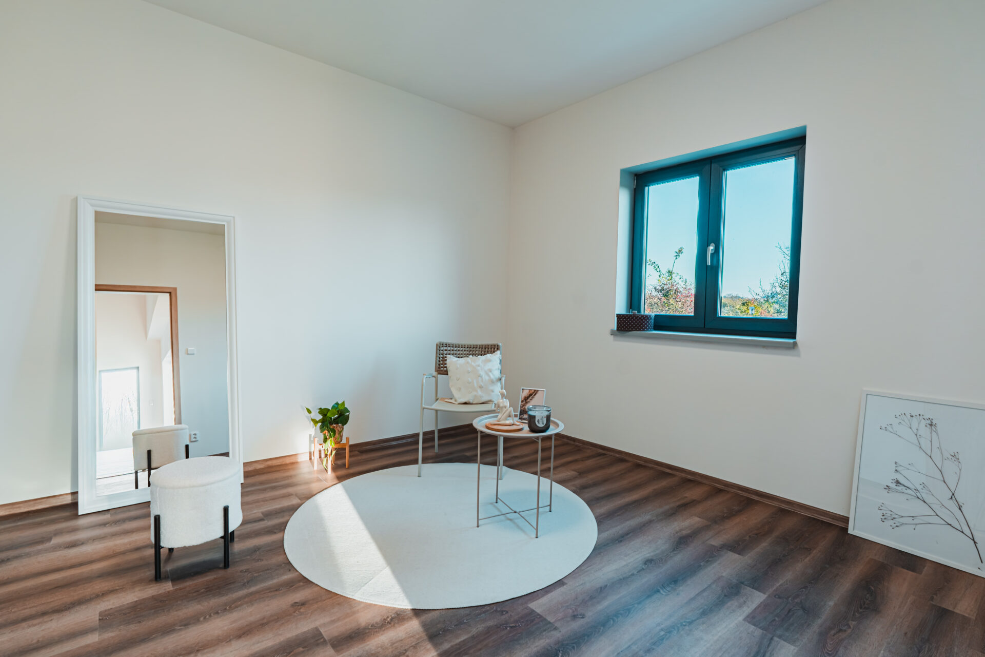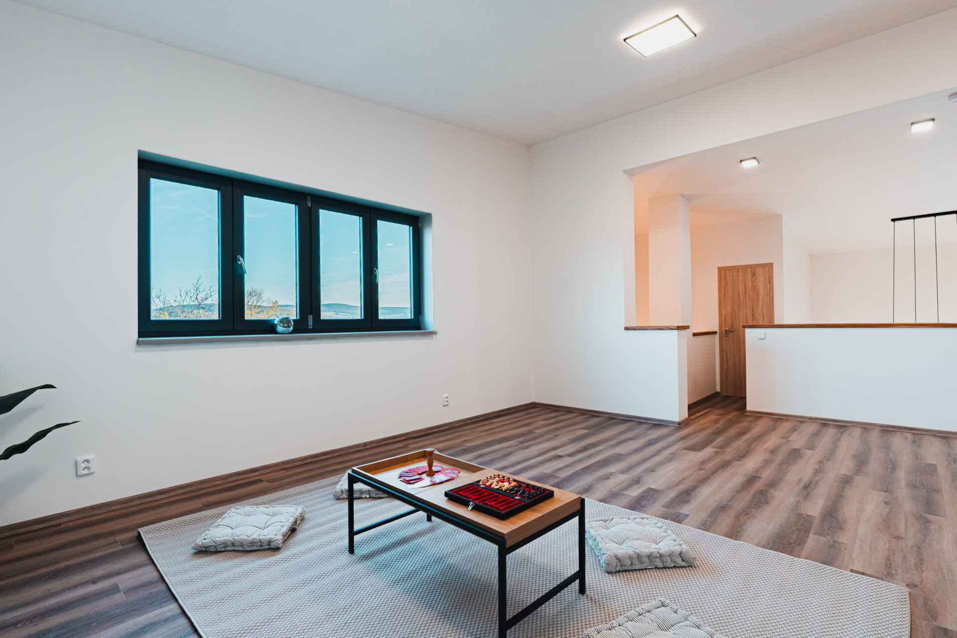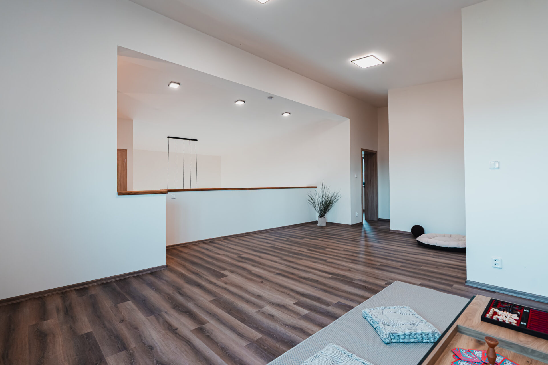 V Rybníčku, malé obci pár minut od Vyškova, stojí dům, který má v sobě něco, co u novostaveb často chybí — velkorysost a prostor, kde se můžete nadechnout.