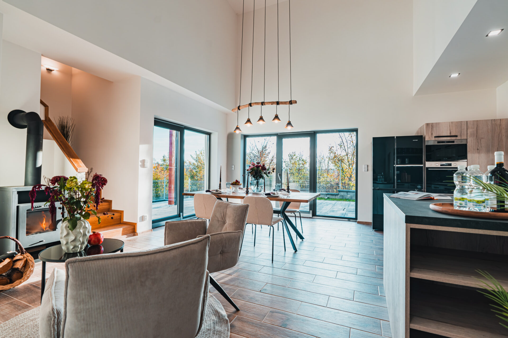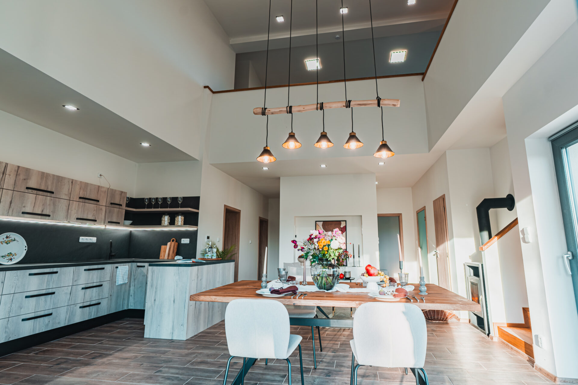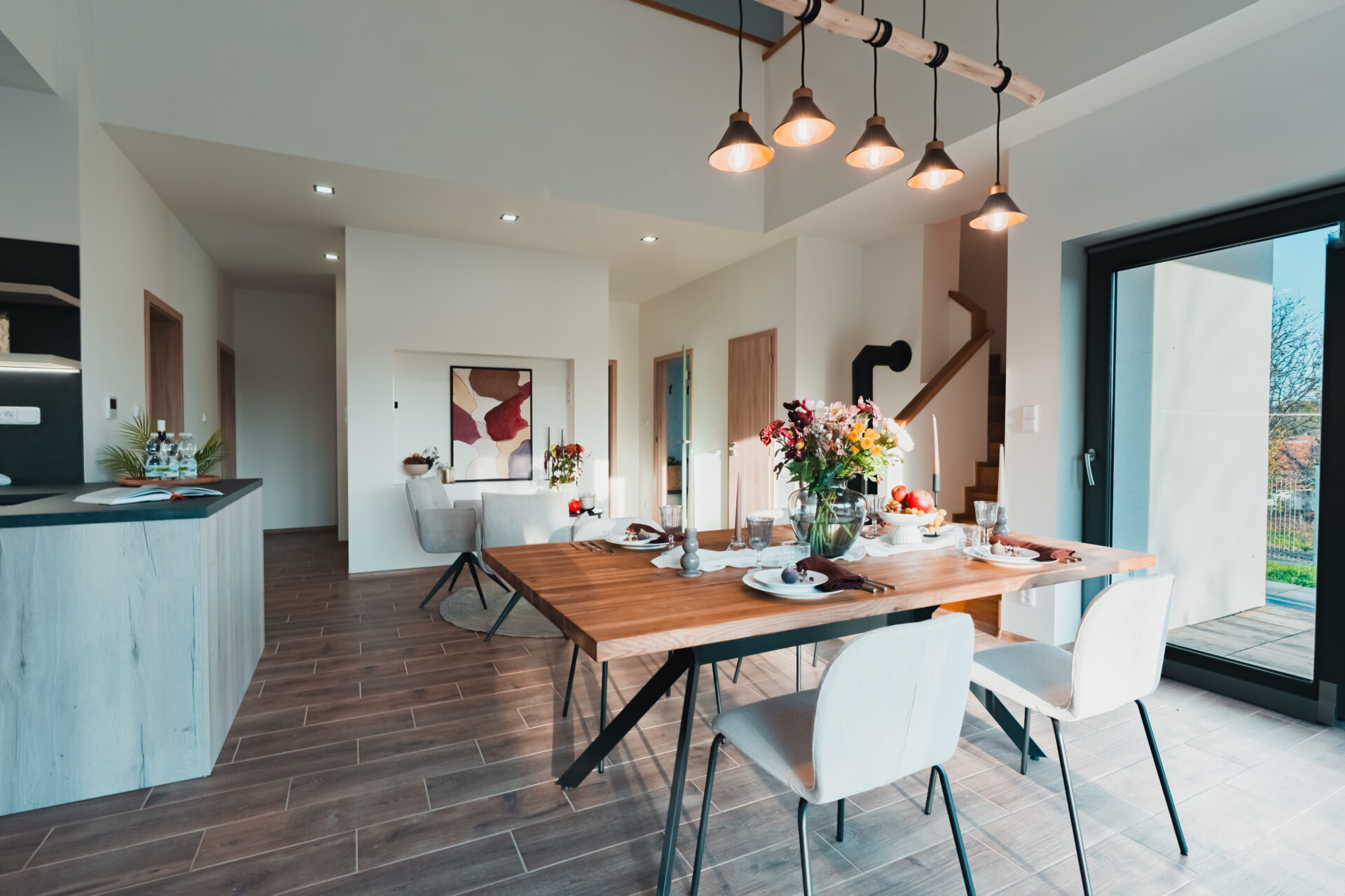 V Rybníčku, malé obci pár minut od Vyškova, stojí dům, který má v sobě něco, co u novostaveb často chybí — velkorysost a prostor, kde se můžete nadechnout.