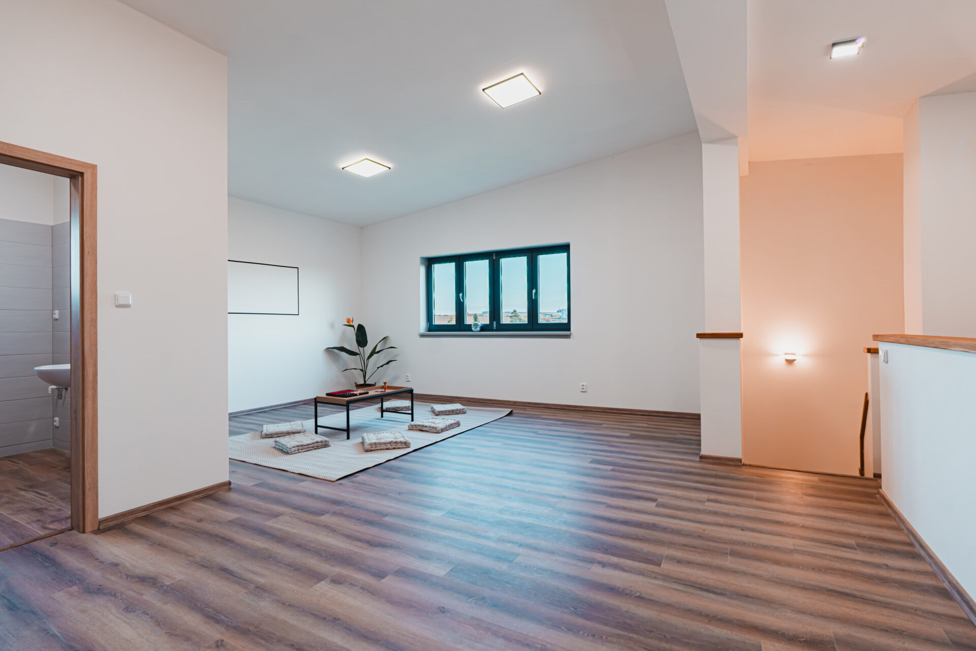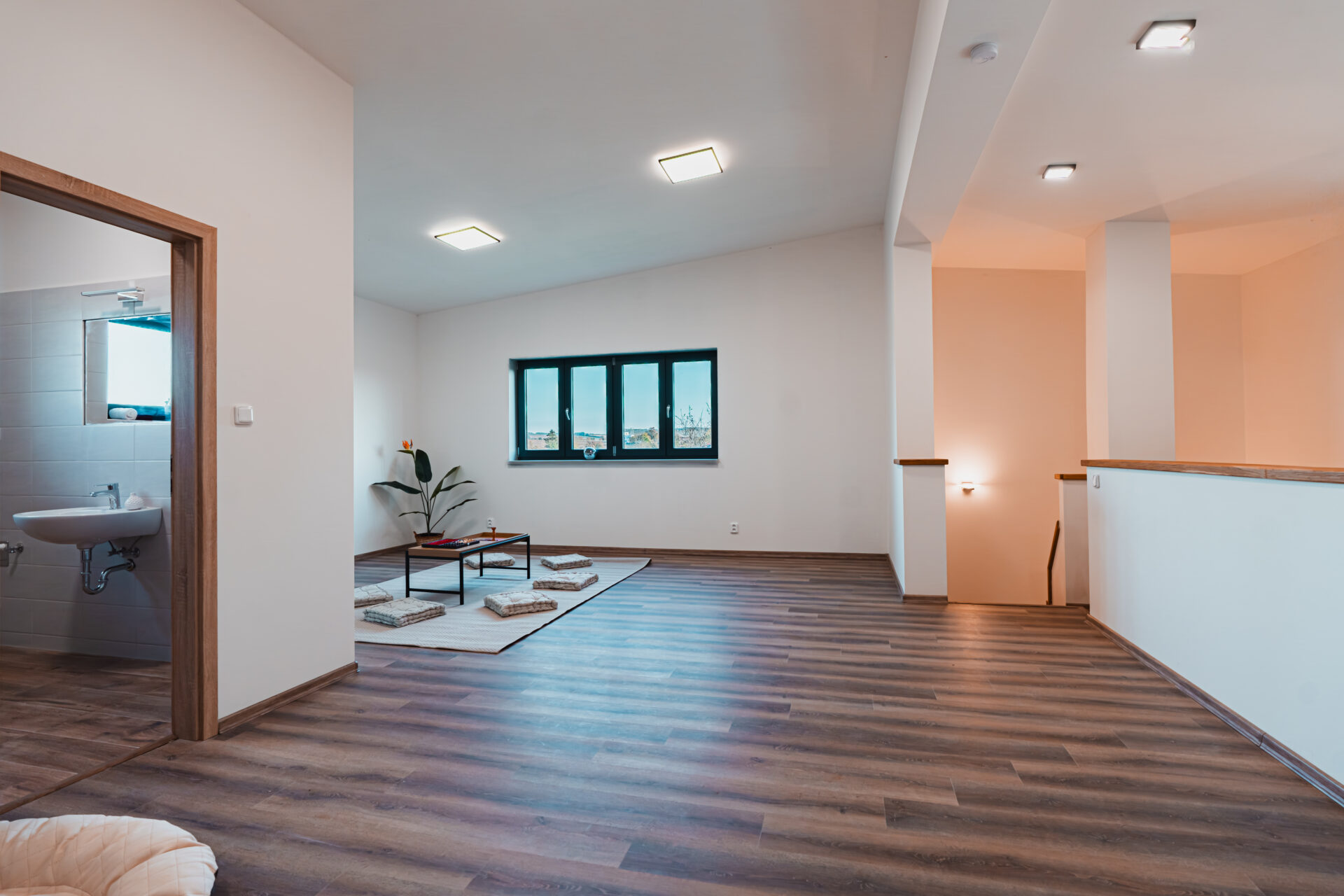 Uvnitř má 192 metrů čtverečních a dispozičně 7+kk. Tady není obývák, ale hala.