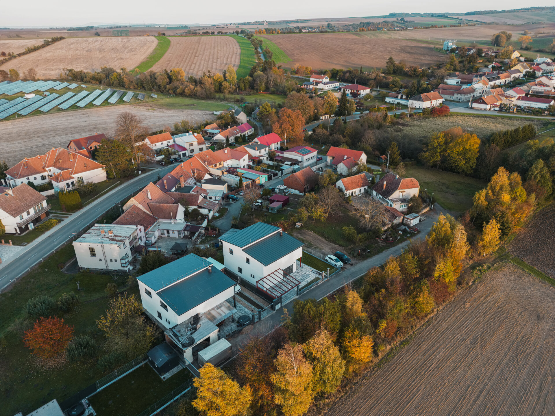 Rybníček je kousek od D1, takže jste do 10 minut ve Vyškově a do 40 minut v Brně. Je to přesně ta rovnováha, kterou hledáte, když už nechcete volit mezi klidem a dostupností.